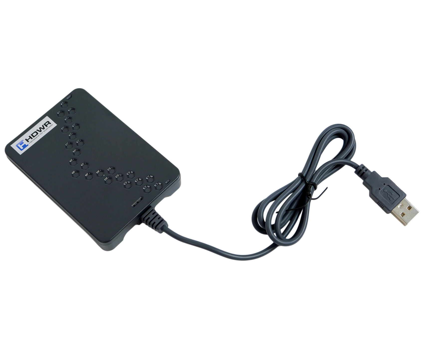 Przewodowy HD-RD40C to kompaktowe urządzenie stworzone do szybkiego i wygodnego odczytu tagów RFID. Cechuje się eleganckim wyglądem wpływającym na estetykę otoczenia, a kompaktowy rozmiar oraz niska waga pozwalają zaoszczędzić przestrzeń roboczą i podnoszą komfort użytkowania.