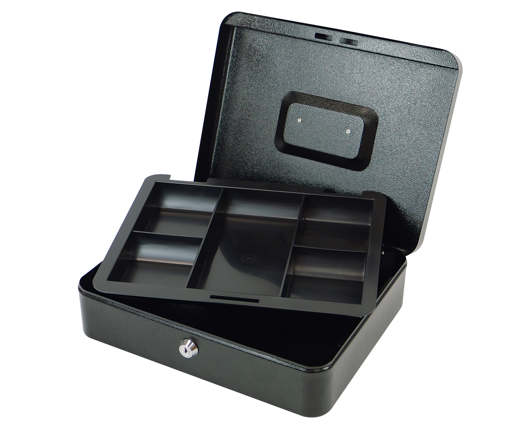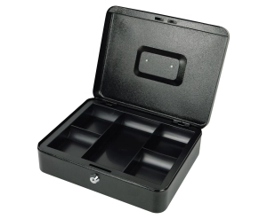 Kasetka posiada jedną przegrodę na banknoty oraz cztery przegródki na bilon, umożliwiając wygodne sortowanie gotówki. Dodatkowo wyjmowany wkład na monety ułatwia organizację i szybki dostęp do drobnych nominałów. Praktyczny uchwyt umieszczony na pokrywie sprawia, że kasetka jest łatwa do przenoszenia. To niezawodne akcesorium, które pomaga utrzymać porządek w finansach i zapewnia bezpieczeństwo przechowywanej gotówki.