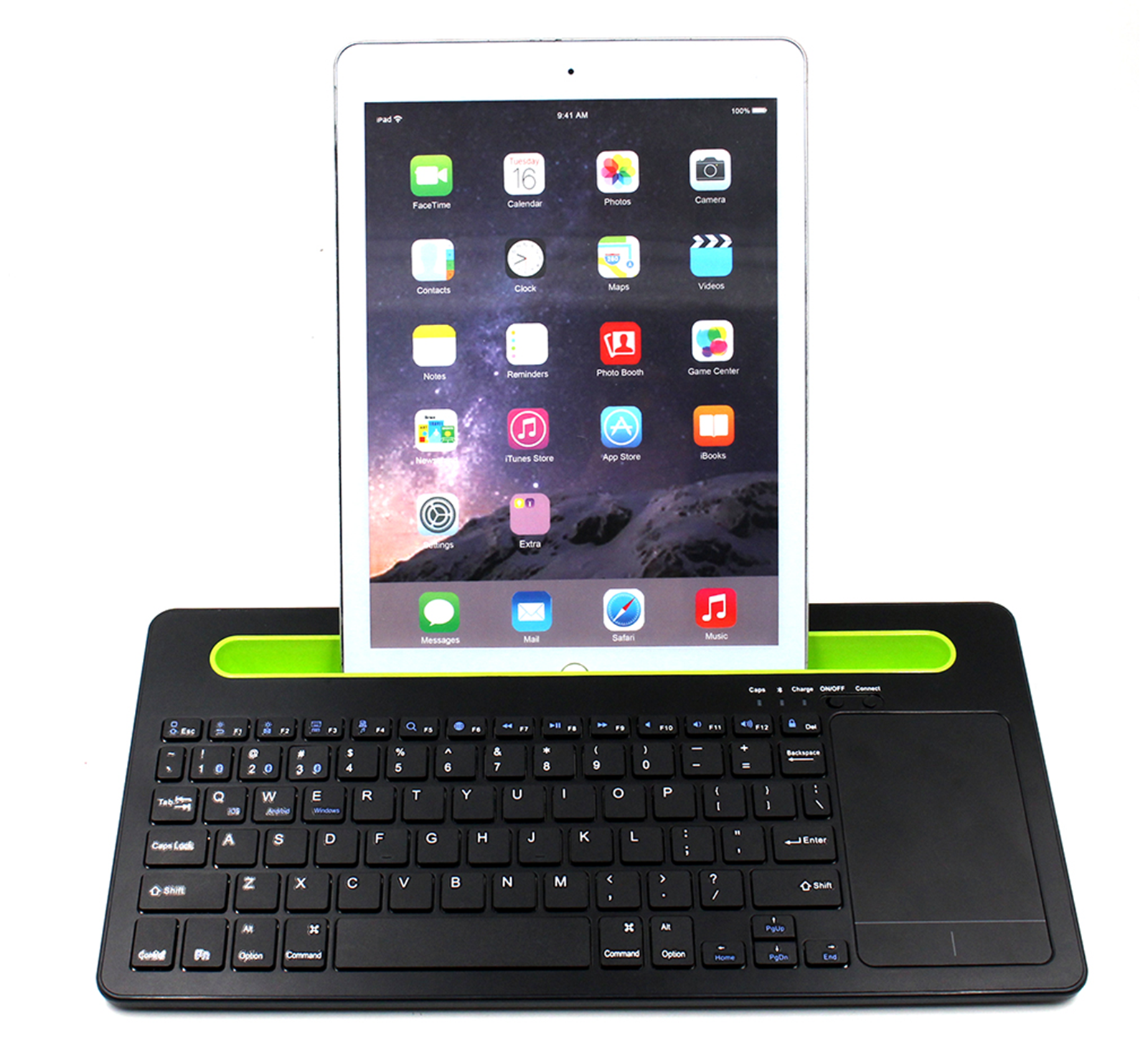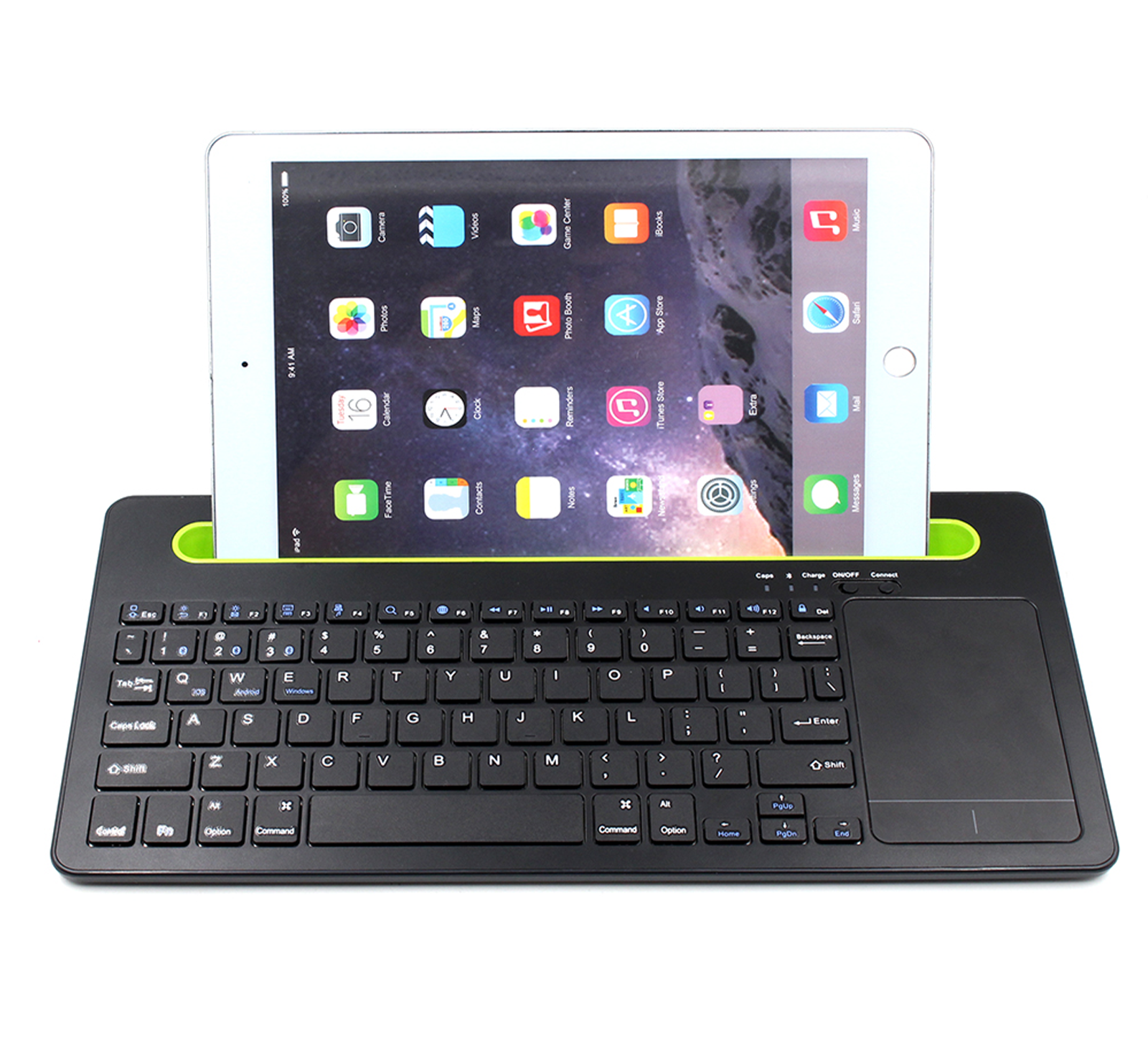 Urządzenie zostało wyposażone w specjalne wgłębienie o szerokości 26 cm w kolorze zielonym, znajdujące się nad klawiszami. Szczelina pełni funkcję podstawki i dzięki odpowiedniemu wyprofilowaniu, zapewnia pewne i stabilne utrzymanie telefonu komórkowego oraz tabletu. Dzięki temu klawiatura idealnie nadaje się do wygodnej pracy z urządzeniami mobilnymi i może być wykorzystywana jako klawiatura do tabletu. W celu zwiększenia komfortu użytkowania, podstawa sprzętu posiada pochyloną konstrukcję eliminującą zmęczenie dłoni, a wielkość i rozmieszczenie klawiszy wpływa na szybkie przyzwyczajenie się do pracy na urządzeniu.
