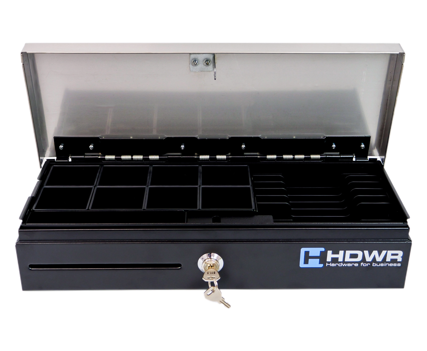 Kasetka zamykana na kluczyk securePRO-460S o podłużnym kształcie wykonana została z grubej, walcowanej na zimno stali, co zapewnia wyjątkową trwałość i bezpieczeństwo przechowywanych środków. Solidna konstrukcja gwarantuje odporność na uszkodzenia, a eleganckie wykończenie w czarnym kolorze ze srebrną pokrywą otwieraną od góry sprawia, że kasetka doskonale prezentuje się w każdym punkcie sprzedaży. To idealne rozwiązanie dla miejsc, w których codziennie obsługuje się duże ilości gotówki.