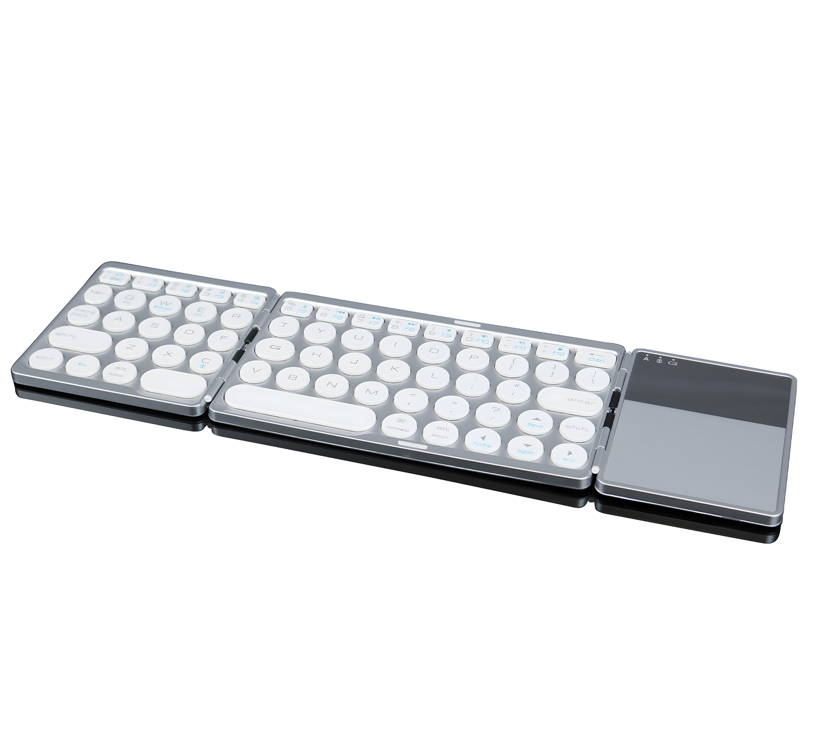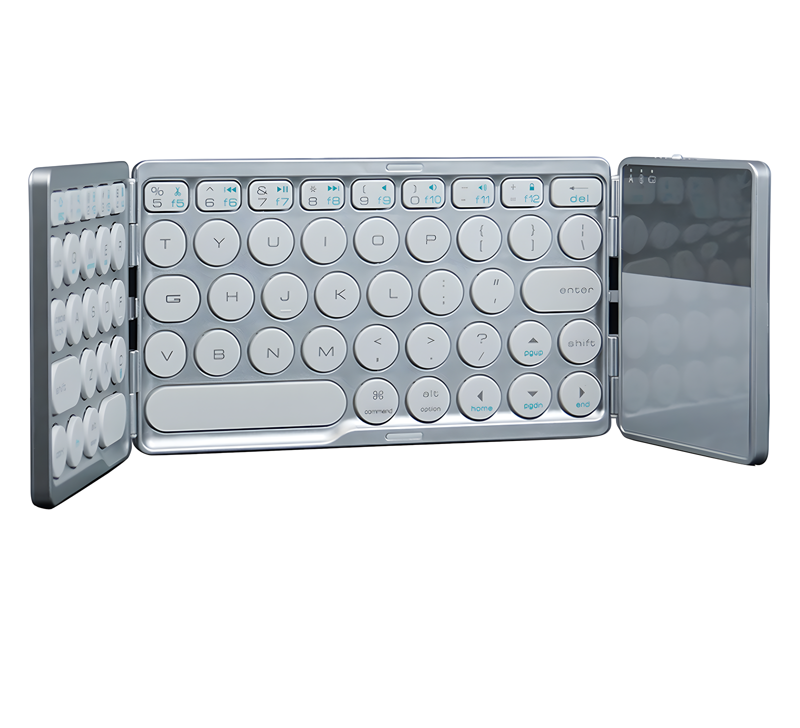 Składana klawiatura Bluetooth oferuje możliwość podwójnego złożenia dwóch zewnętrznych części. Po złożeniu ma zaledwie 16 cm szerokości, co umożliwia wygodne przenoszenie i sprawia, że zmieści się w torbie. Pozwala to na swobodne transportowanie i czyni sprzęt mobilnym. Dzięki temu model BS120 sprawdzi się nie tylko podczas użytku w domowym zaciszu, nadaje się również do pracy w biurze. W obudowie zostały umieszczone dwa magnesy, które zabezpieczają przed samoczynnym rozłożeniem klawiatury, a samo rozkładanie urządzenia przez użytkownika, odbywa się płynnie.