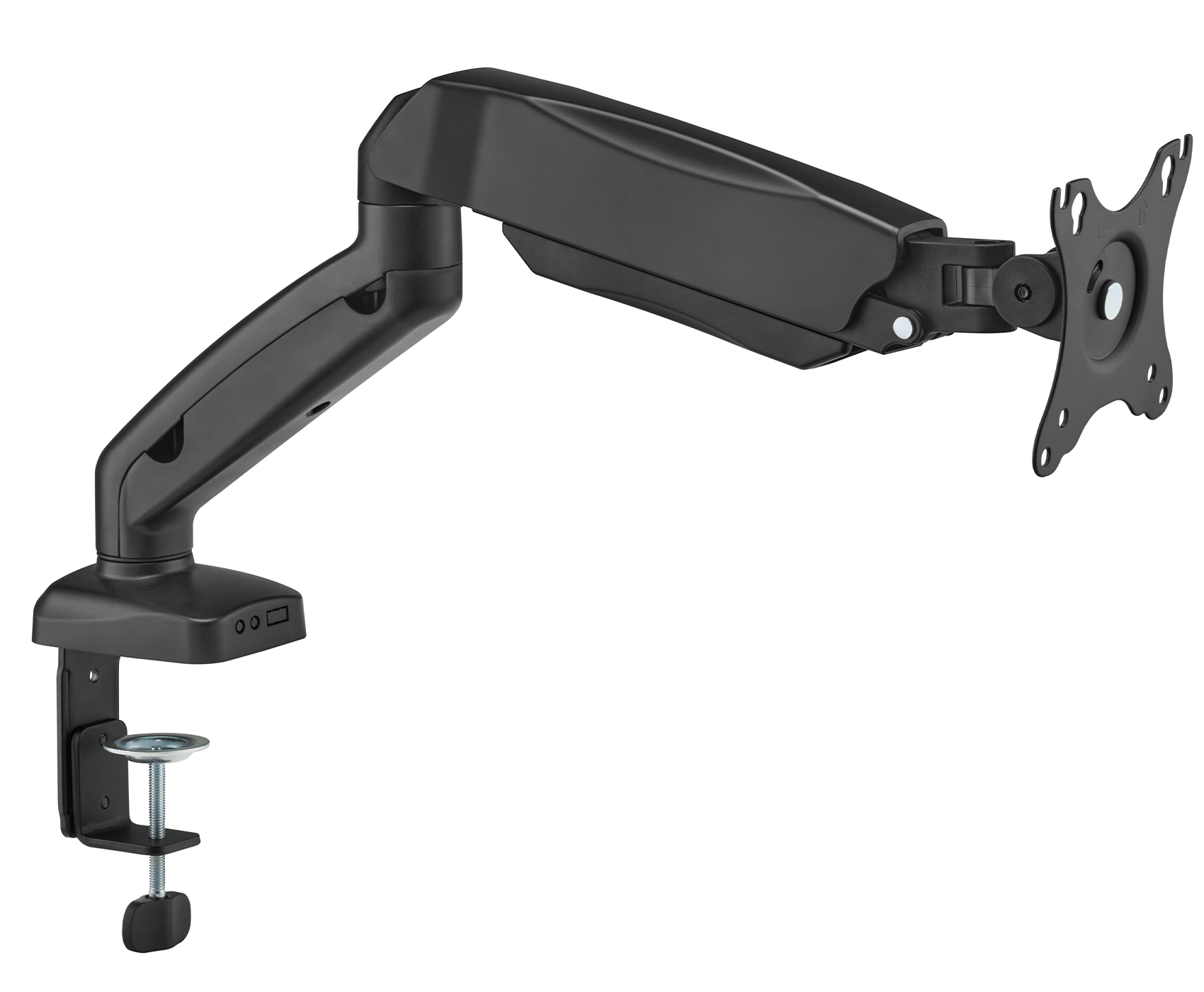 zaprojektowany z myślą o stabilnym montażu jednego monitora. Ramię wykonane z trwałych materiałów — aluminium, stali i tworzywa — pozwala na bezpieczne zamocowanie monitora o wadze od 2 do 9 kg i przekątnej od 17 do 32 cali. Kompatybilność ze standardem VESA 75 x 75 mm i 100 x 100 mm zapewnia szeroką uniwersalność uchwytu.