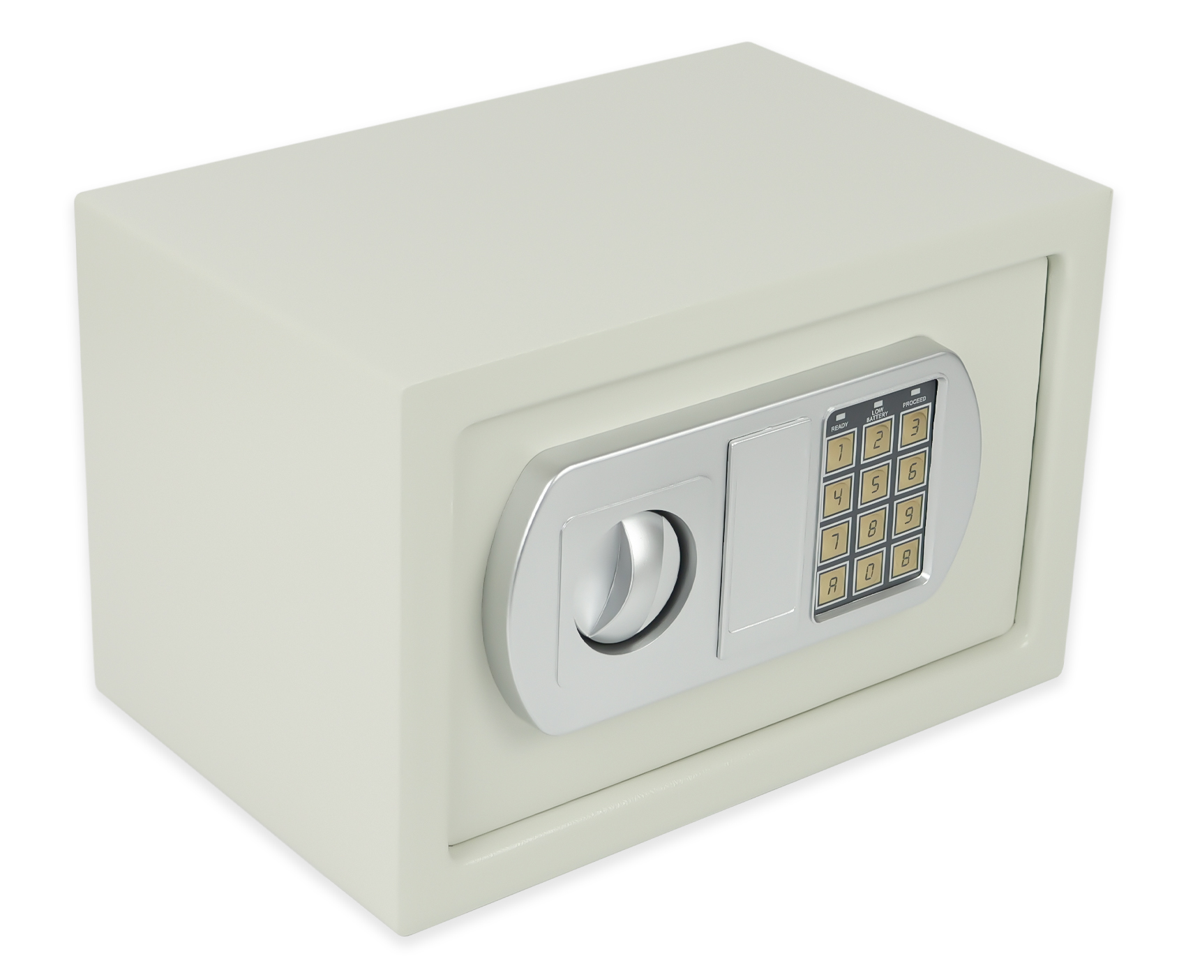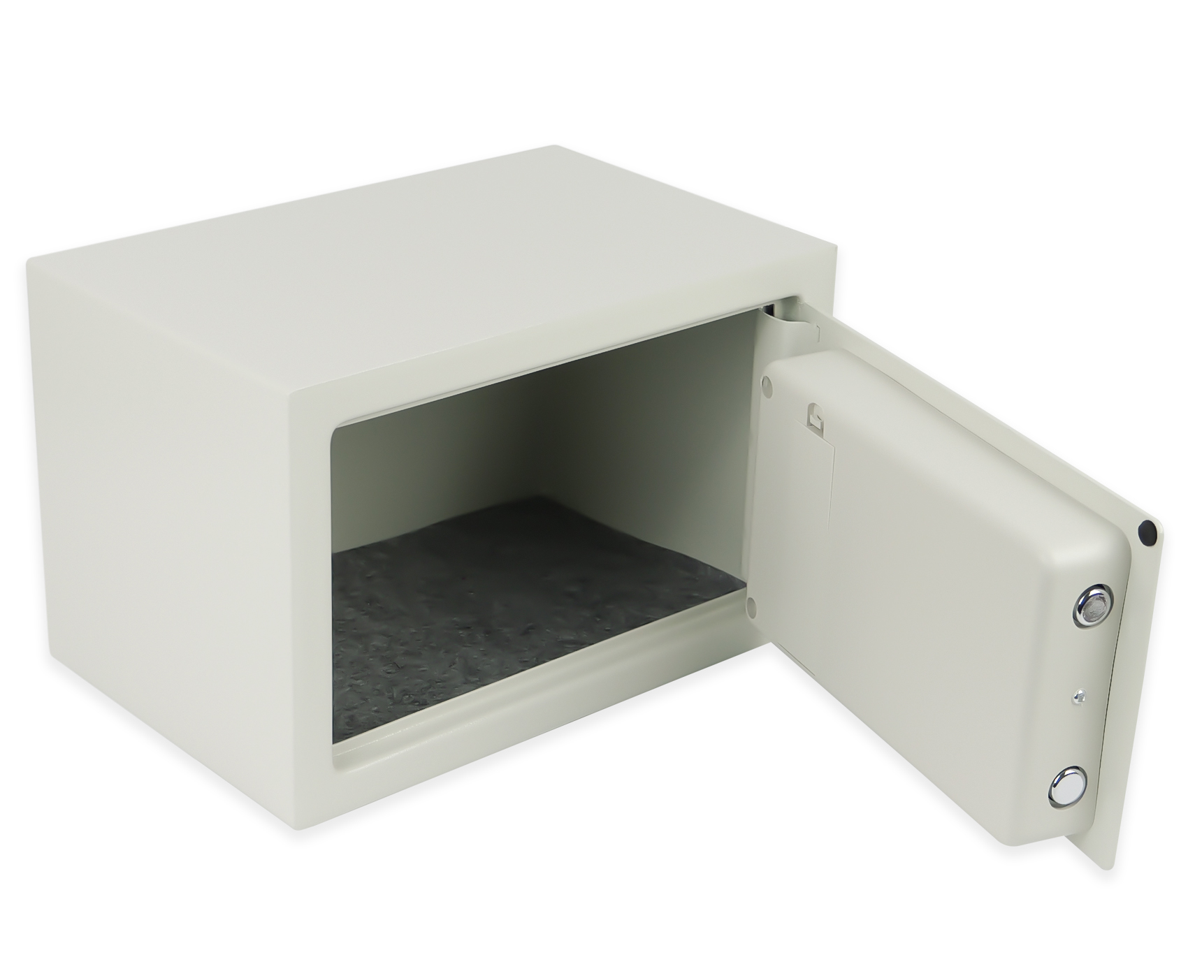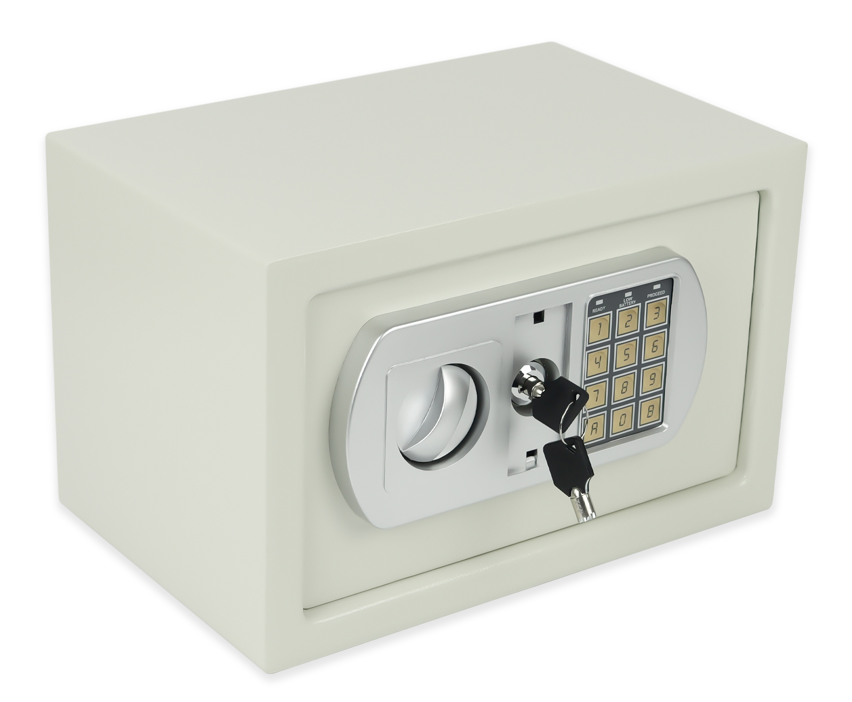 Model wyposażono w elektroniczny zamek na kod oraz mechaniczny zamek na klucz, co gwarantuje pełną kontrolę nad dostępem i wygodę użytkowania. Użytkownik może zaprogramować własny 3-8 cyfrowy kod PIN, a w razie potrzeby skorzystać z dwóch kluczy awaryjnych do otwarcia sejfu. Panel sterujący zasilany jest bateriami 4 × AA 1,5V (brak w zestawie). Dla większego bezpieczeństwa sejf posiada funkcję blokady po trzech błędnych próbach wprowadzenia kodu.