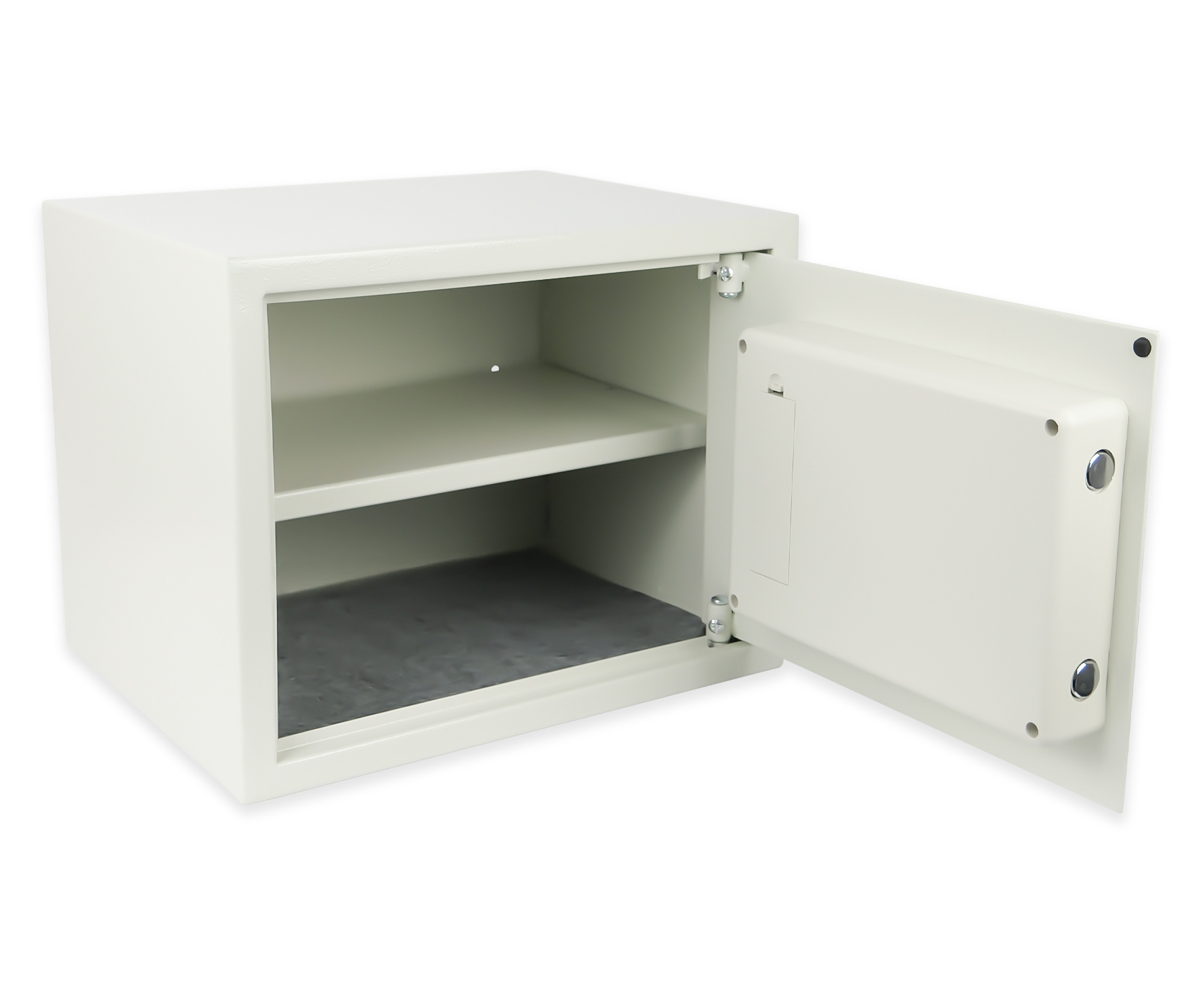 Sejf SecureBox-50 to solidna i praktyczna konstrukcja, która skutecznie zabezpieczy gotówkę, dokumenty, biżuterię oraz inne cenne przedmioty w domu, biurze czy sklepie. Wykonany z wytrzymałej stali malowanej proszkowo o grubości 1,5 mm, co zapewnia dobrą odporność na uszkodzenia mechaniczne. Wnętrze sejfu zostało wyposażone w wyjmowaną półkę, która ułatwia organizację przechowywanych przedmiotów i pozwala dostosować przestrzeń do własnych potrzeb.