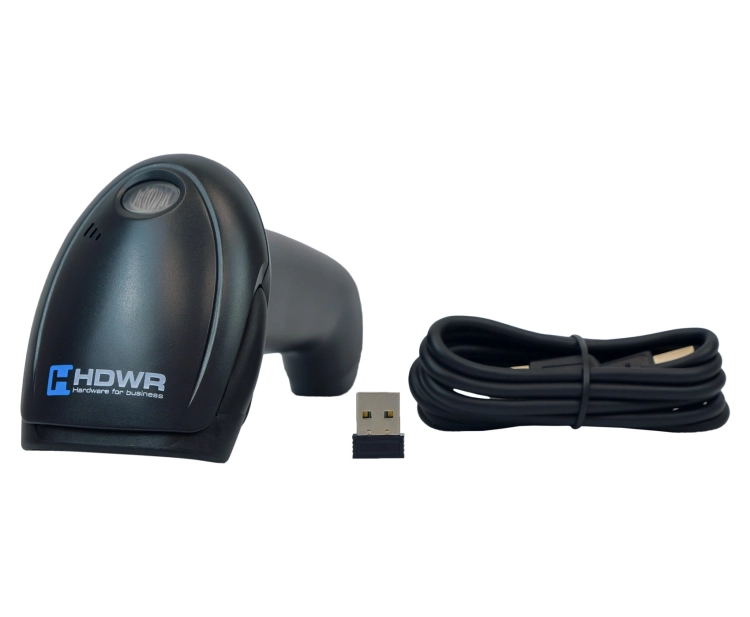 Bezprzewodowy czytnik kodów kreskowych, kabel USB do ładowania, odbiornik USB, instrukcja obsługi