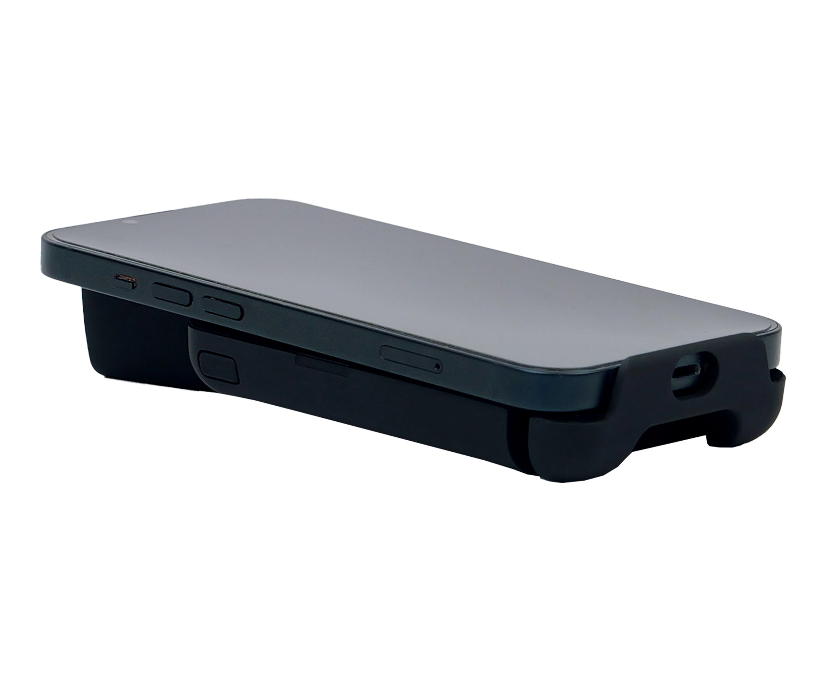 Czytnik został tak skonstruowany, aby przymocować go do telefonu komórkowego. Produkt posiada specjalny mechanizm wysuwno-zaciskowy, dzięki któremu można precyzyjnie dopasować go niemal do każdej wielkości telefonu o grubości nieprzekraczającej 1 cm. Wgłębienie, w którym znajduje się telefon, posiada specjalny materiał, dzięki któremu urządzenie nie ślizga się. Moduł Bluetooth znajdujący się w urządzeniu skanującym pozwala na bezproblemowe przesyłanie danych do zamocowanego telefonu bez obaw o utratę zasięgu bezprzewodowego. To sprawia, że czytnik świetnie sprawdzi się w pracy na magazynie bądź w centrach logistycznych i wysyłkowych, gdzie mobilność sprzętu jest na wagę złota. Dołączony do zestawu kabel ze złączem USB-C pozwala na podłączenie do skanera telefon i przesyłanie dane przewodowo, bądź jednoczesne skanowanie i ładowanie czytnik.