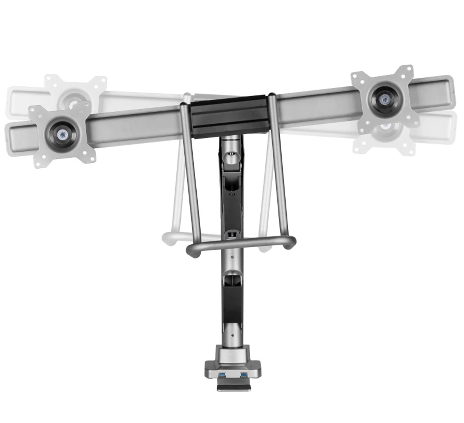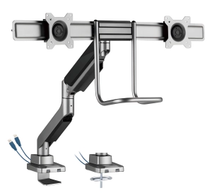 Stojak na 2 monitory z przekątną 17-32 cale z 2 portami USB w podstawie, ze sprężyną gazową SolidHand- BM02U