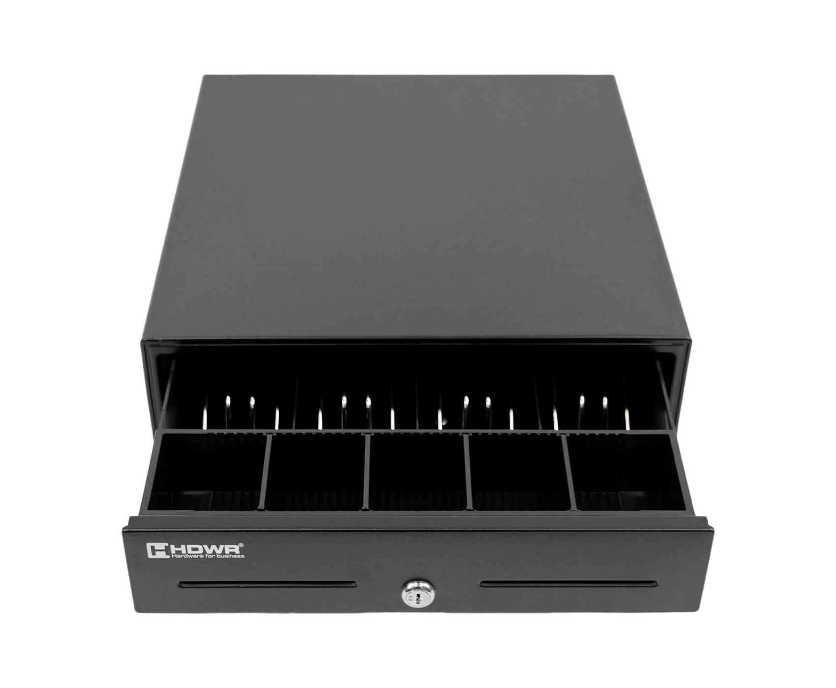 Szuflada kasowa HD-KER33 cechuje się eleganckim wyglądem i została stworzona do przechowywania wszelkiego rodzaju środków pieniężnych. Wykonanie z grubej stali walcowanej na zimno gwarantuje wytrzymałość i odporność, a zamykany na klucz zamek chroni przed dostępem niepowołanych osób.