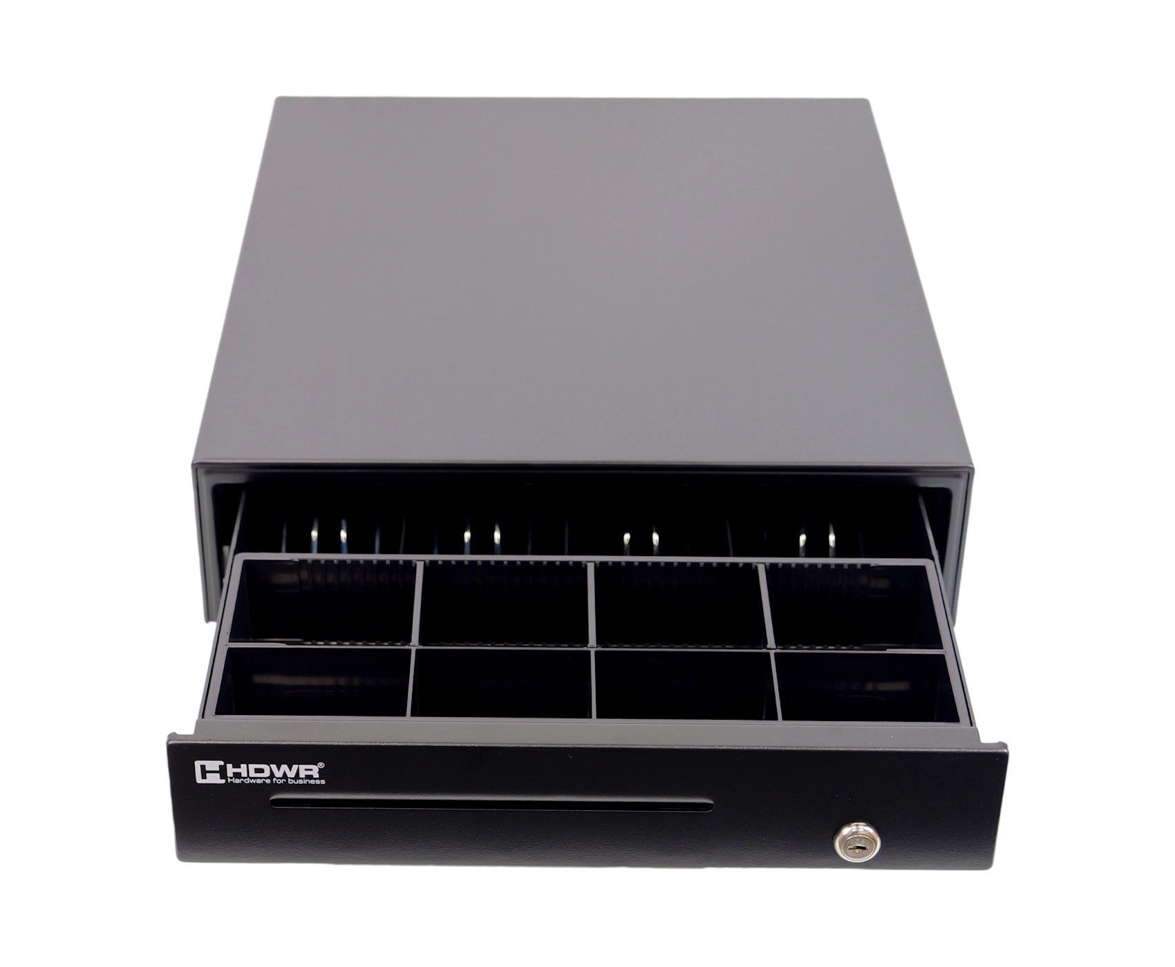 Solidna szuflada kasowa HD-KER35została wykonana z grubej stali walcowanej na zimno, co zapewnia wytrzymałość oraz odporność i posiada zamek zamykany na kluczyk, chroniący przed dostępem niepowołanych osób. Przeznaczona została do przechowywania wewnątrz środków pieniężnych oraz papierów wartościowych.
