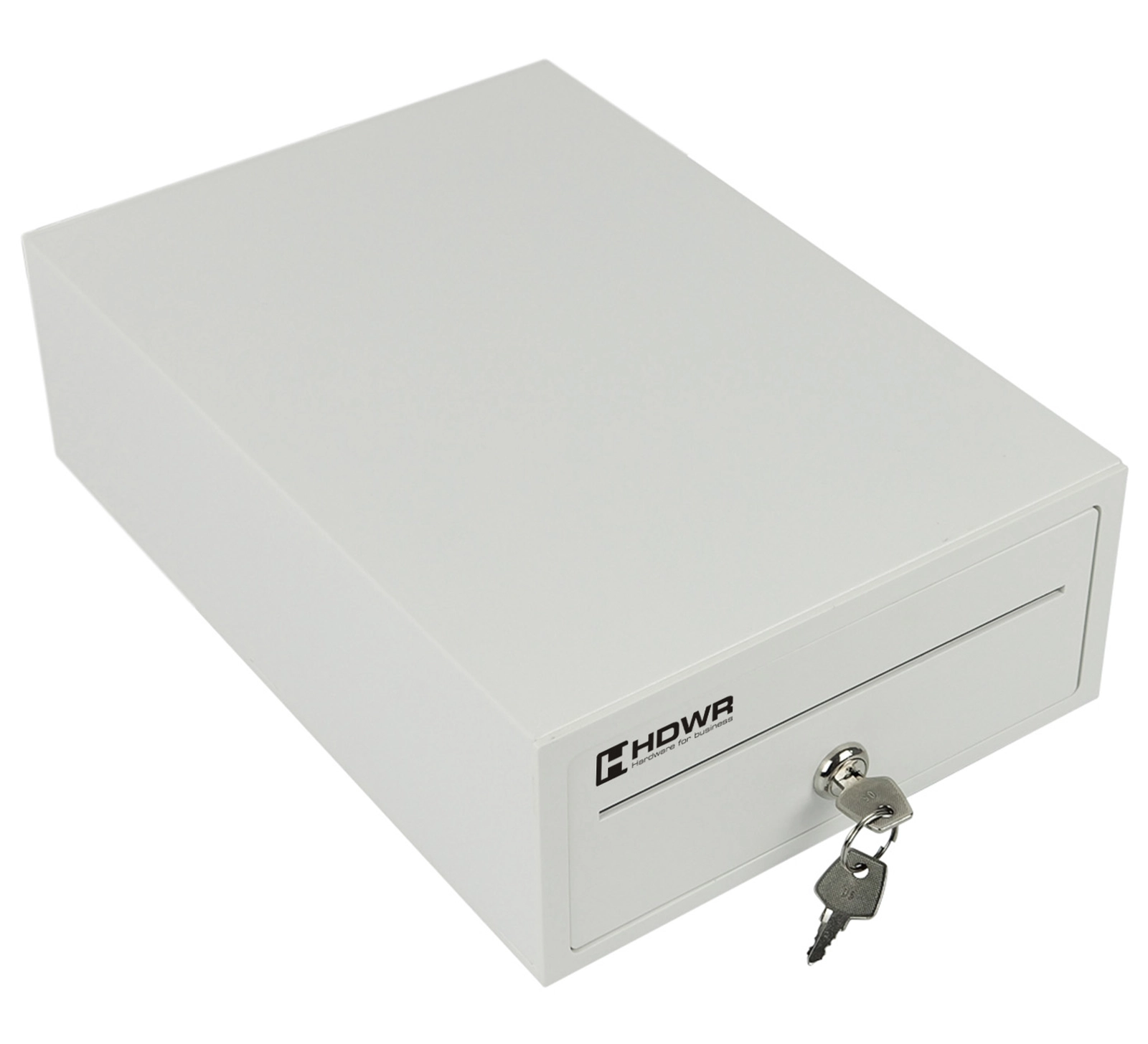 HD-KER20W oferuje aż trzy sposoby otwierania: za pomocą dołączonego kluczyka, zdalnie przy użyciu podłączonego urządzenia (np. kasy fiskalnej) oraz w trybie awaryjnym, wykorzystując dźwignię umieszczoną na spodzie szuflady.