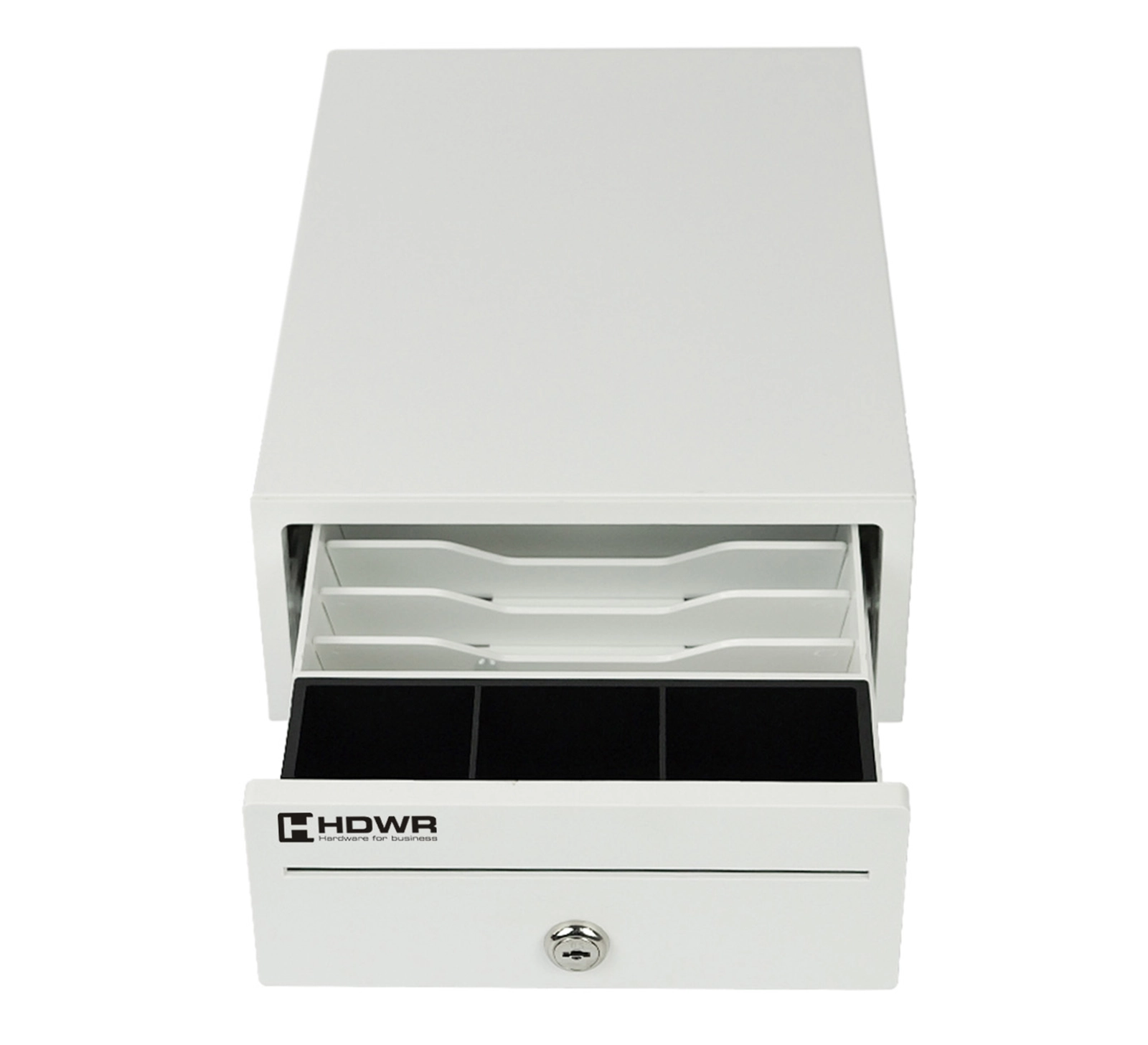 Model HD-KER20W został zaprojektowany z myślą o utrzymaniu porządku i wygodzie użytkowania. Wyposażony jest w 5 przegród na banknoty oraz 3 przeznaczone na monety. Pod wyjmowanym organizerem na monety znajduje się dodatkowe miejsce na inne środki płatnicze, takie jak bony, czeki czy potwierdzenia płatności. Dodatkowo specjalny otwór o szerokości 16 cm umożliwia przechowywanie dokumentów bez konieczności otwierania szuflady.