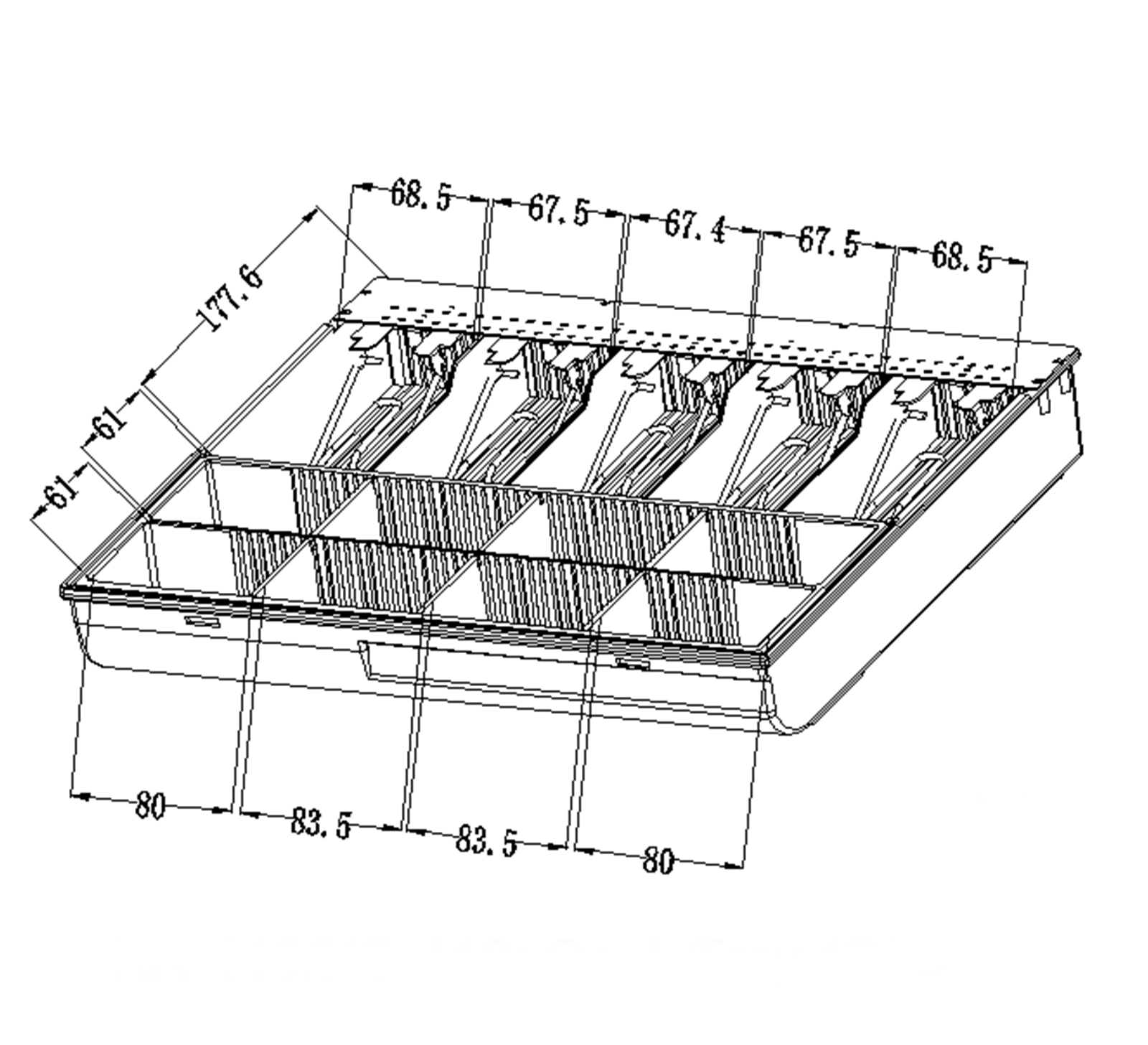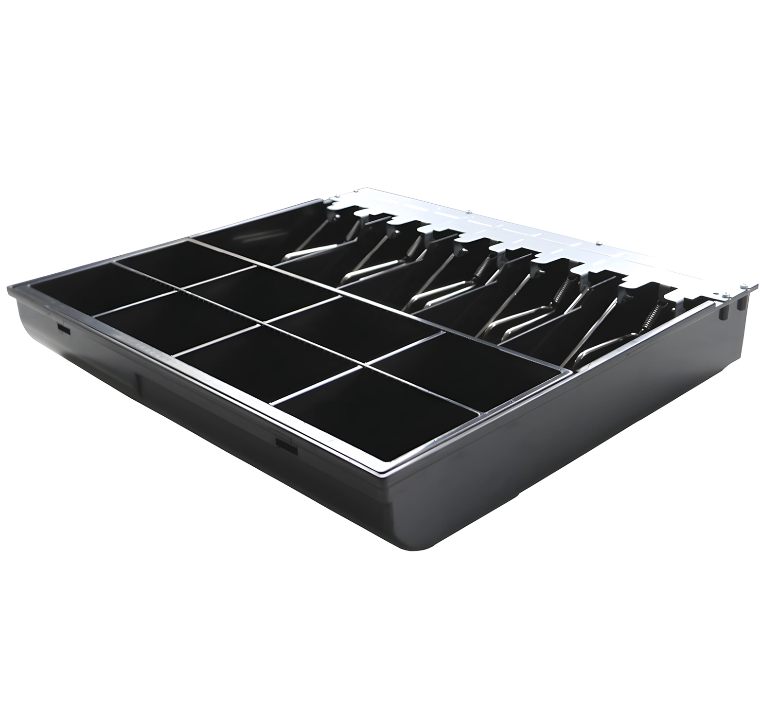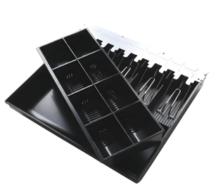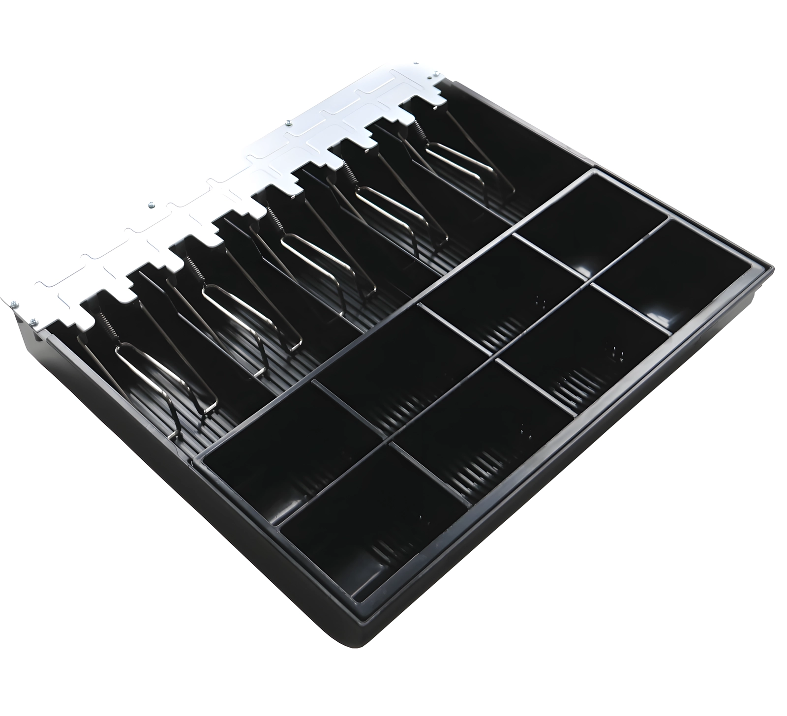 - Dodatkowe funkcje: regulacja przegród na bilon i przegród na banknoty, skrytka pod wkładką na bilon dla innych środków płatniczych