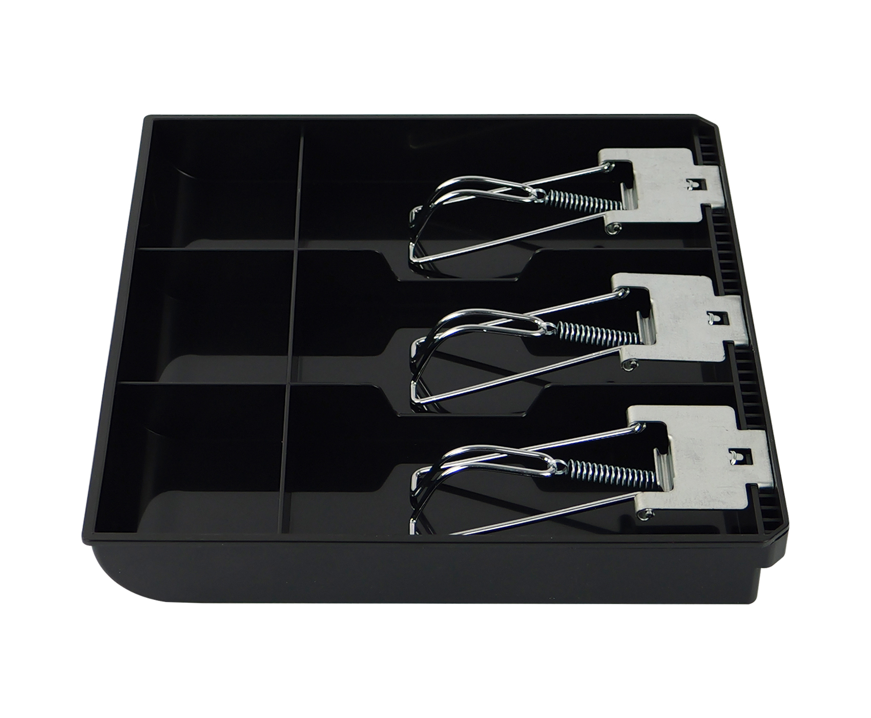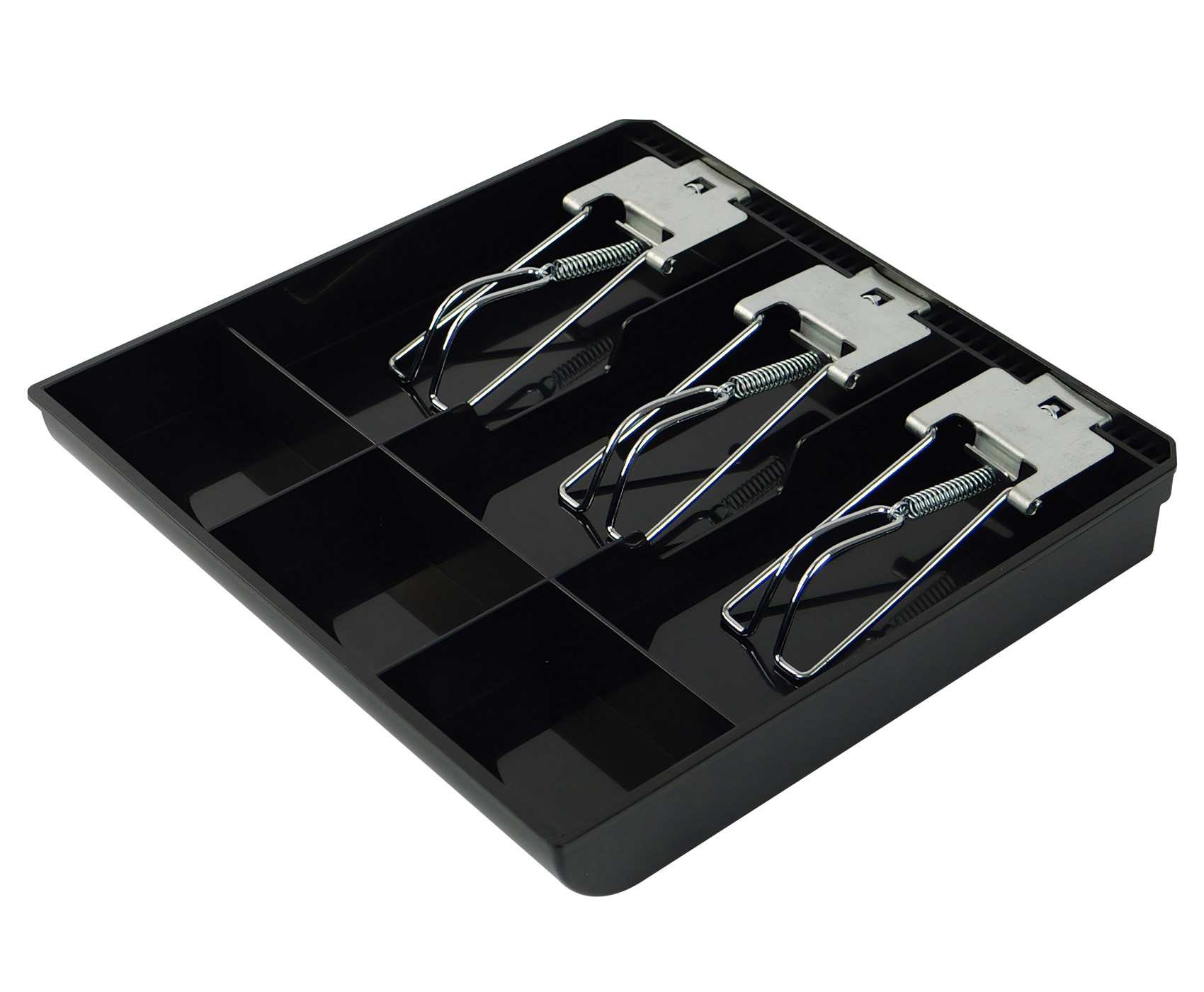 Aby zapewnić stabilność przechowywanej gotówki, tacka InsertTill-250 została wyposażona w zatrzaski ze stali nierdzewnej z mechanizmem sprężynowym, które skutecznie przytrzymują banknoty na miejscu. Kompaktowe wymiary 24,5 × 24,2 × 3,5 cm i niewielka waga 0,4 kg sprawiają, że tacka jest lekka i łatwa do przenoszenia.