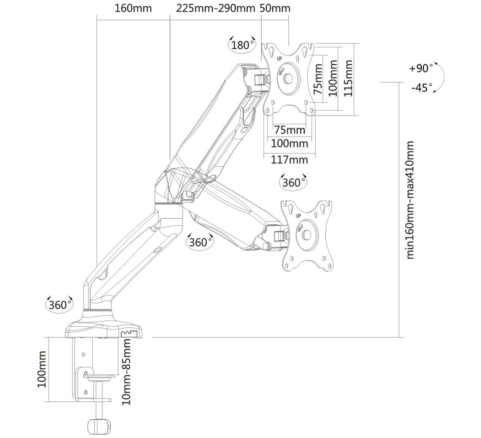 Uchwyt do monitora o przekątnej 13"-27", regulowany za pomocą sprężyny gazowej, standard VESA SolidHand-SG01