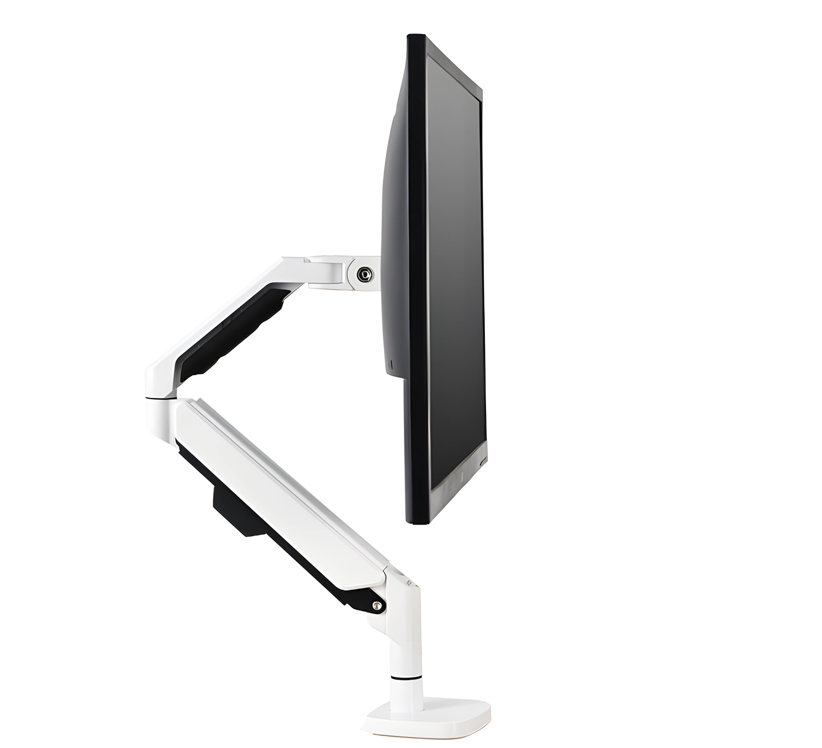 Ramiona uchwytu zostały wyposażone w sprężynę gazową, odpowiedzialną za swobodne i precyzyjne ustawienie monitora w oczekiwanej pozycji. Narzędzie pozwala na obrót monitora o 180 stopni, pochylenie oraz odchylenie według indywidualnych potrzeb. Dużym ułatwieniem jest funkcja tilt, która daje możliwość odwrócenia ramienia o 90 stopni, zyskując tym samym pionowy ekran.
