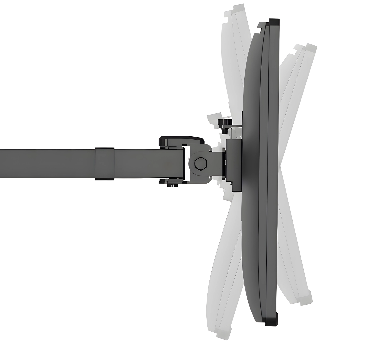 Uchwyt pozwala na precyzyjne ustawienie monitora w żądanej pozycji, dzięki ruchomym ramionom. Można go obrócić o 180 stopni, pochylić i odchylić zgodnie z potrzebami. Do dyspozycji jest także funkcja tilt, dzięki której ekran można obrócić o 90 stopni, czyli ustawienie monitora w pozycji pionowej.