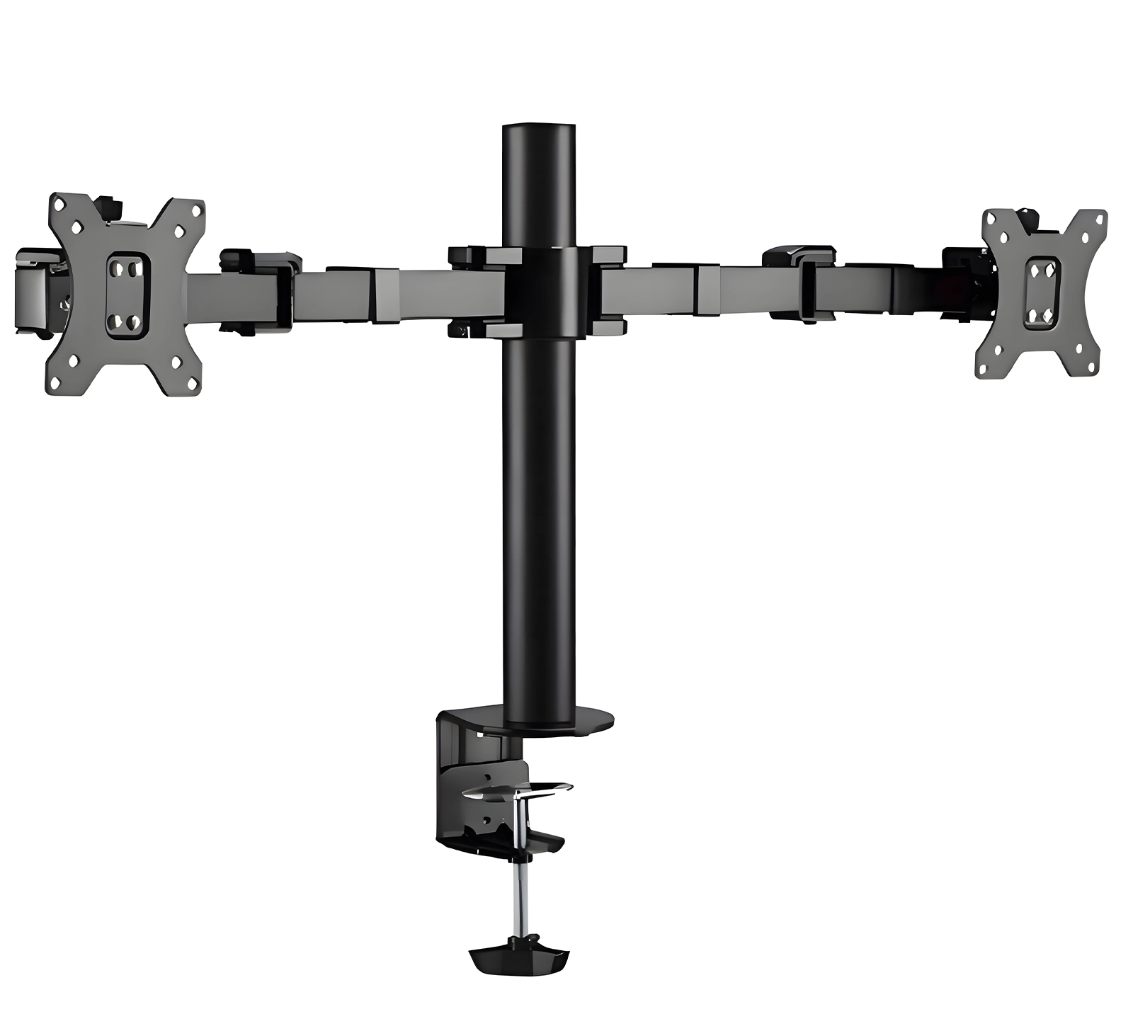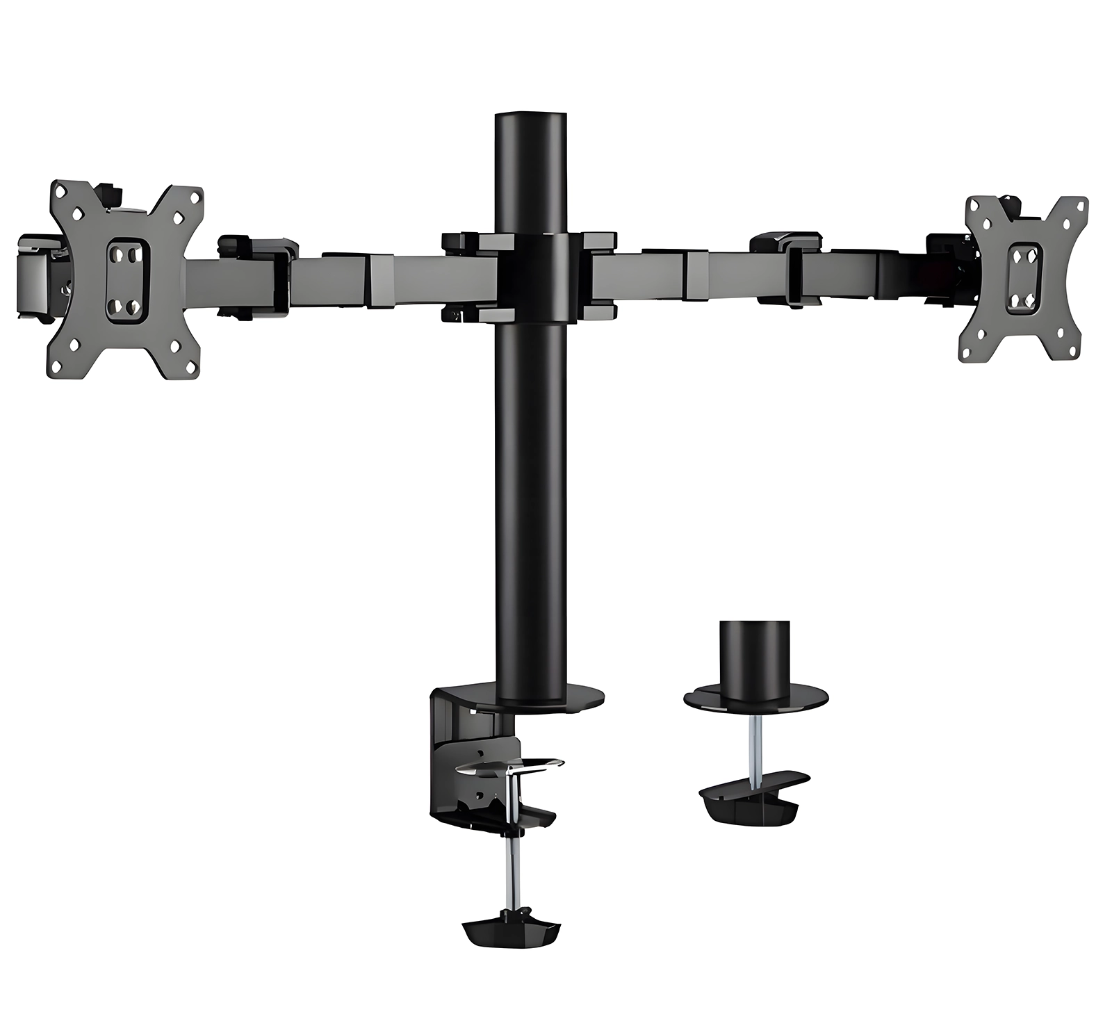 SolidHand AM02 to solidny uchwyt biurkowy na 2 monitory do bezpiecznego montażu dwóch wyświetlaczy o wadze do 12 kg każdy i rozdzielczości od 17 do 32 cali. Dzięki niemu zaoszczędzisz przestrzeń na biurku, a porządek i organizacja powierzchni stają się prostsze. Wykonany z wysokiej jakości materiałów, uchwyt pasuje do większości monitorów dostępnych na rynku dzięki otworom montażowym ze standardem VESA 75 x 75 mm lub 100 x 100 mm. Montaż można wykonać na dwa sposoby: za pomocą specjalnej śruby dociskowej mocowanej na krawędzi biurka lub poprzez wywiercenie otworu w blacie za pomocą śruby z podkładką znajdującą się w zestawie. Uchwyt SolidHand AM02 to wygodne i bezpieczne rozwiązanie zarówno dla domu, jak i biur.