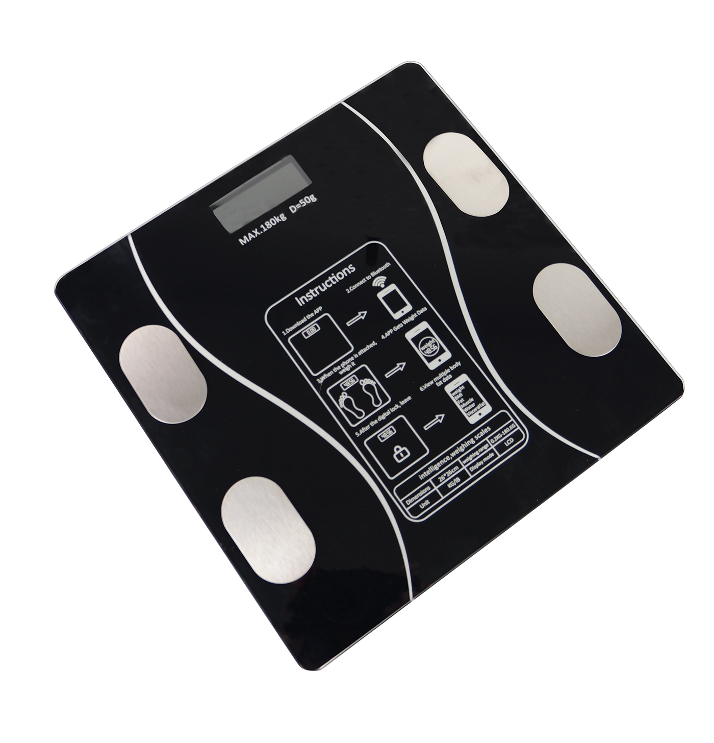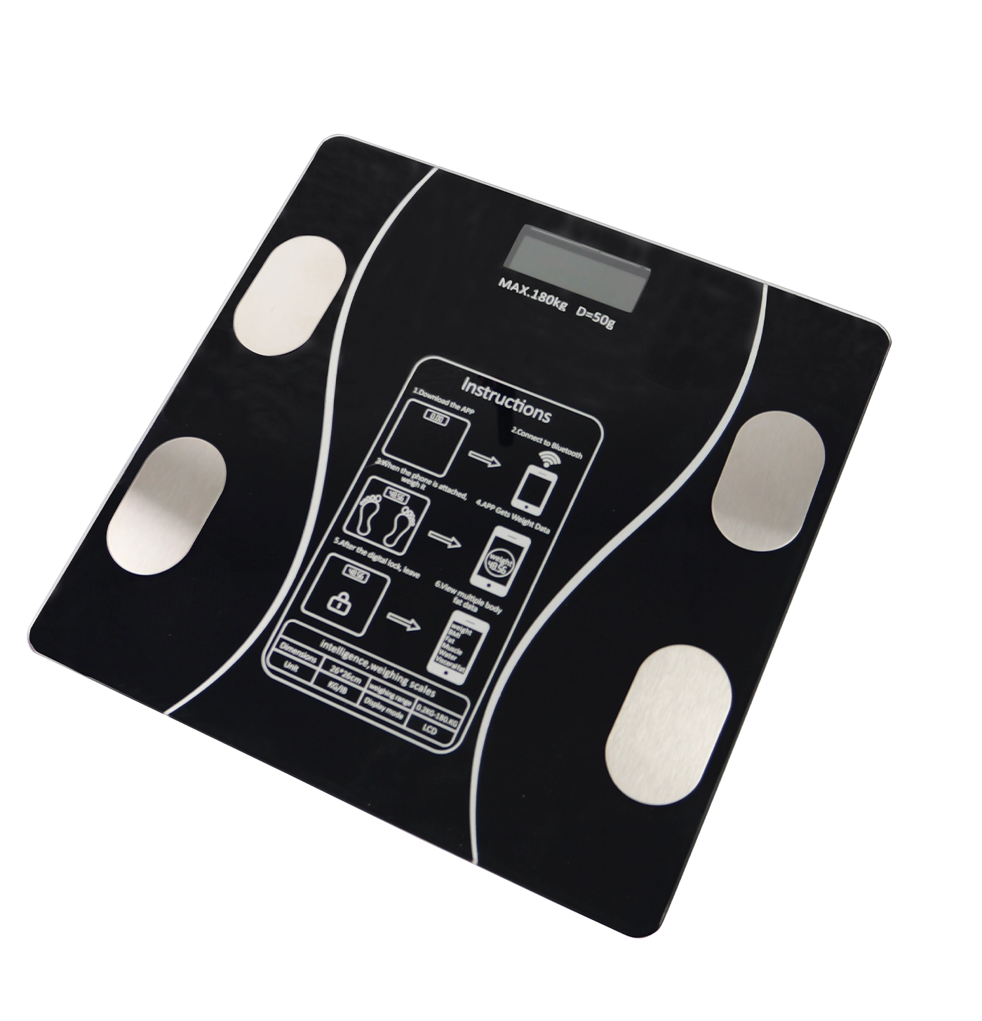 Waga została wyposażona w inteligentne funkcje, które zwiększają wygodę i precyzję pomiarów. Automatyczne włączanie i wyłączanie pozwala oszczędzać energię, a zakres ważenia do 180 kg z dokładnością do 100 g sprawia, że urządzenie sprawdzi się w różnych zastosowaniach. Możliwość zmiany jednostek (kg, lb, st) pozwala dopasować pomiar do indywidualnych potrzeb. Dodatkowo, wbudowany moduł Bluetooth umożliwia synchronizację ze smartfonem, co pozwala na analizę składu ciała, w tym pomiar tkanki tłuszczowej i masy mięśniowej. Waga wyświetla również temperaturę otoczenia oraz poziom baterii, co czyni ją jeszcze bardziej praktycznym urządzeniem do codziennego użytku.