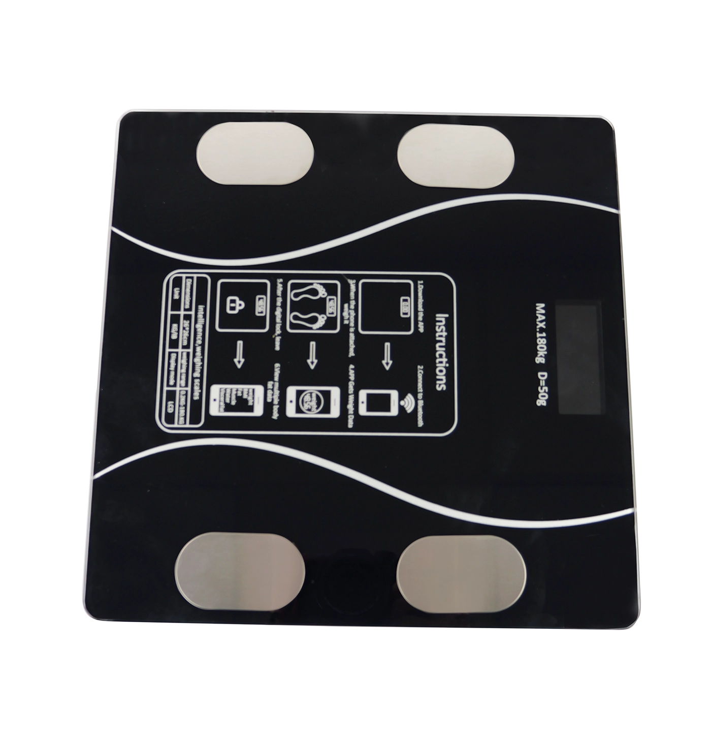 Elektroniczna waga łazienkowa, 2 x baterie AAA, instrukcja obsługi.