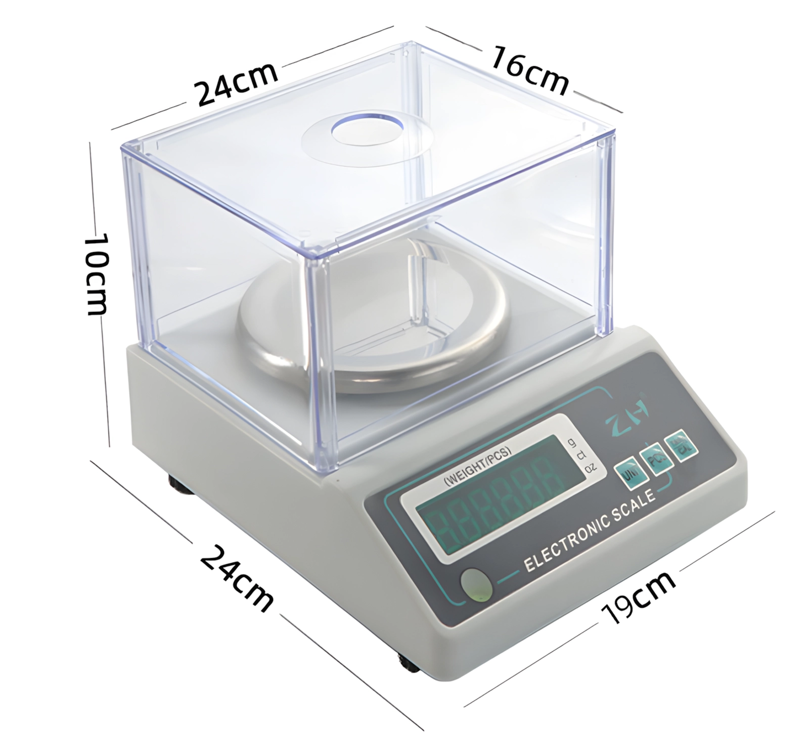 Dodatkowo urządzenie ważące dysponuje pokrywą wykonaną z wytrzymałego plastiku, która stanowi dodatkowe zabezpieczenie dla znajdujących się na metalowej platformie towarów. W pokrywie znajduje się otwór pozwalający na umieszczenie wewnątrz przedmiotów celem zważenia. Rozwiązanie to zapewnia bezpieczeństwo podczas pomiarów różnego rodzaju towarów. Dzięki temu waga idealnie sprawdzi się jako waga jubilerska do sprawdzania masy biżuterii lub waga laboratoryjna do ważenia probówek z różną zawartością, a także znajdzie zastosowanie w kuchni, jako narzędzie do pomiaru produktów sypkich.
