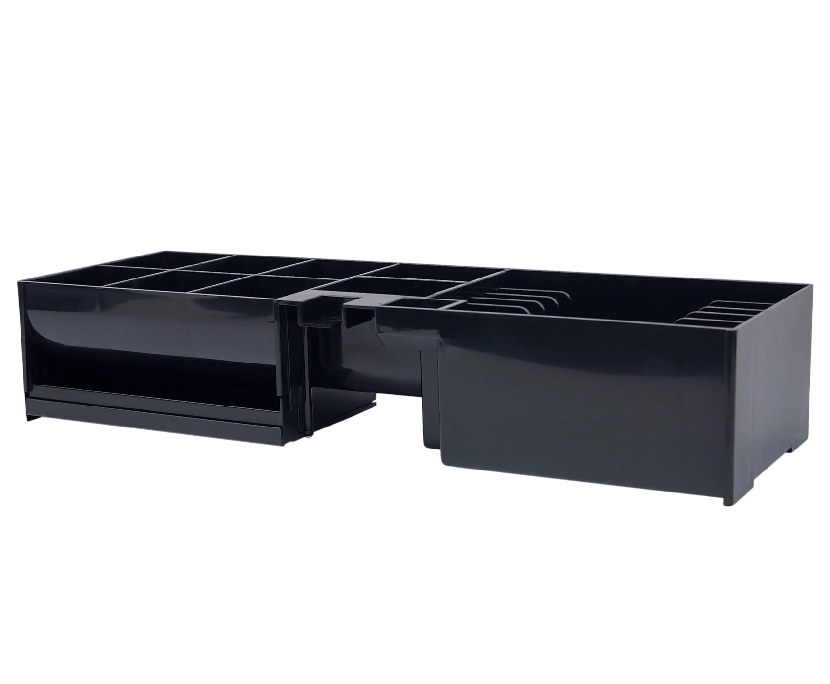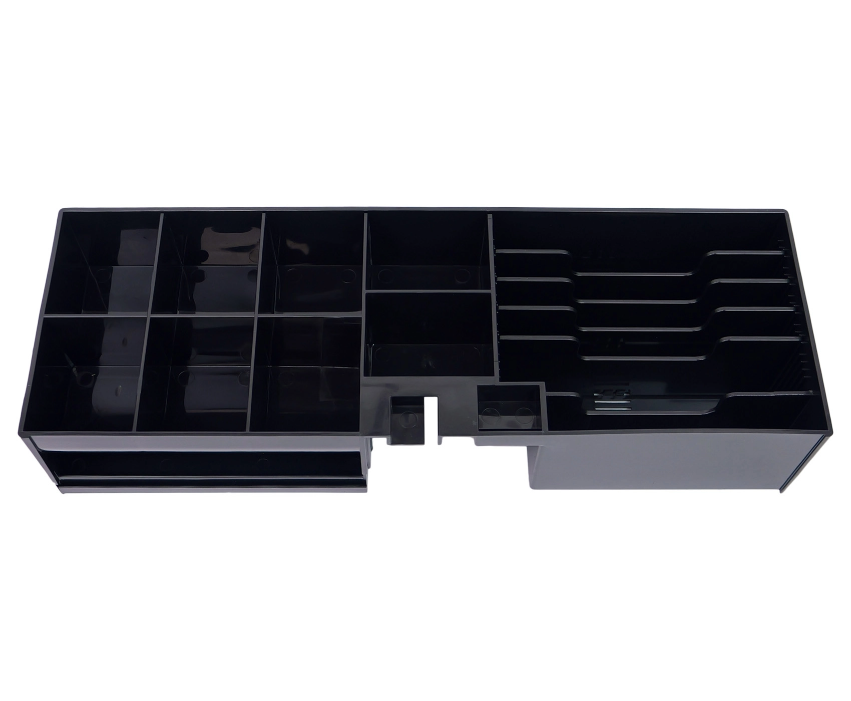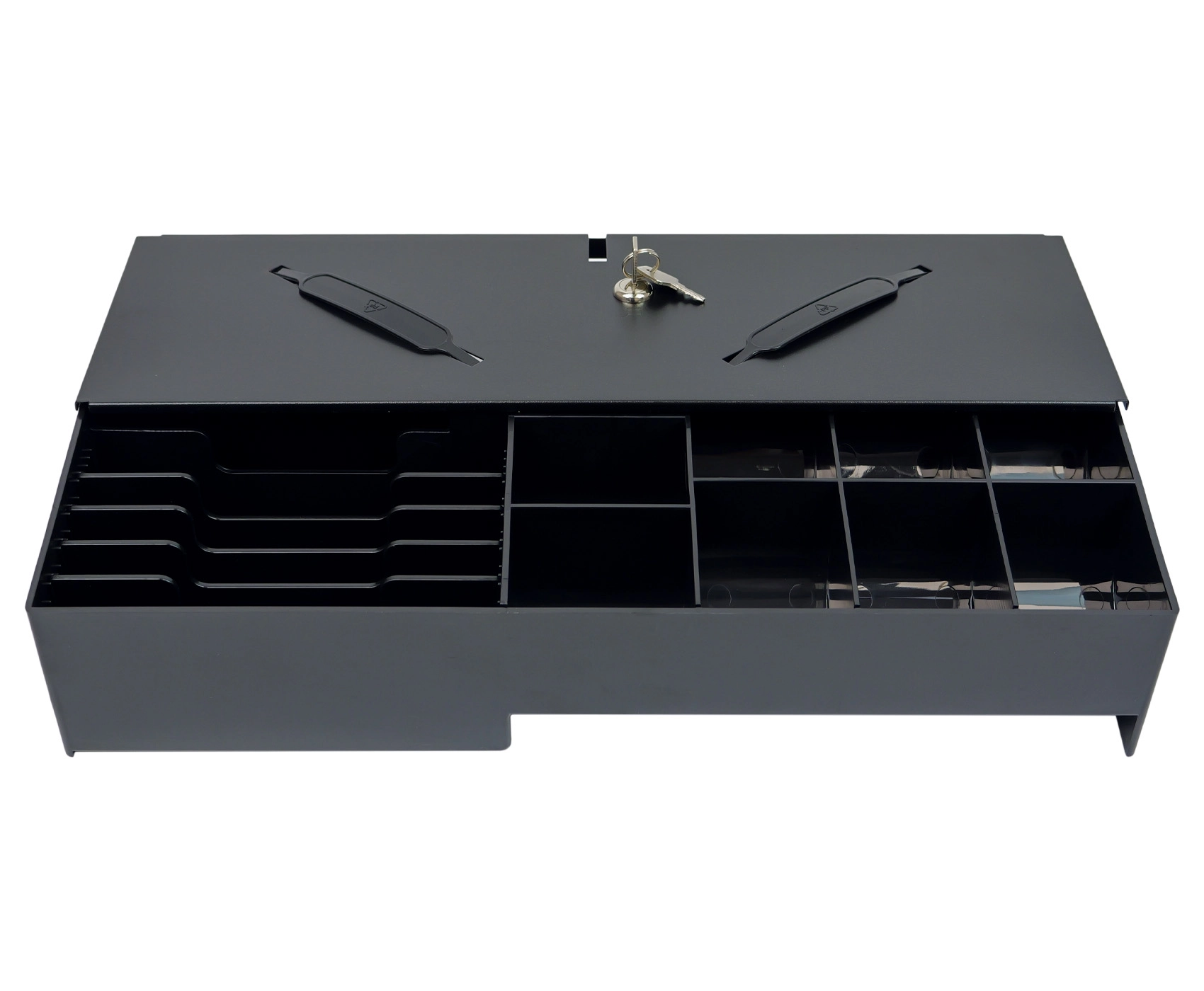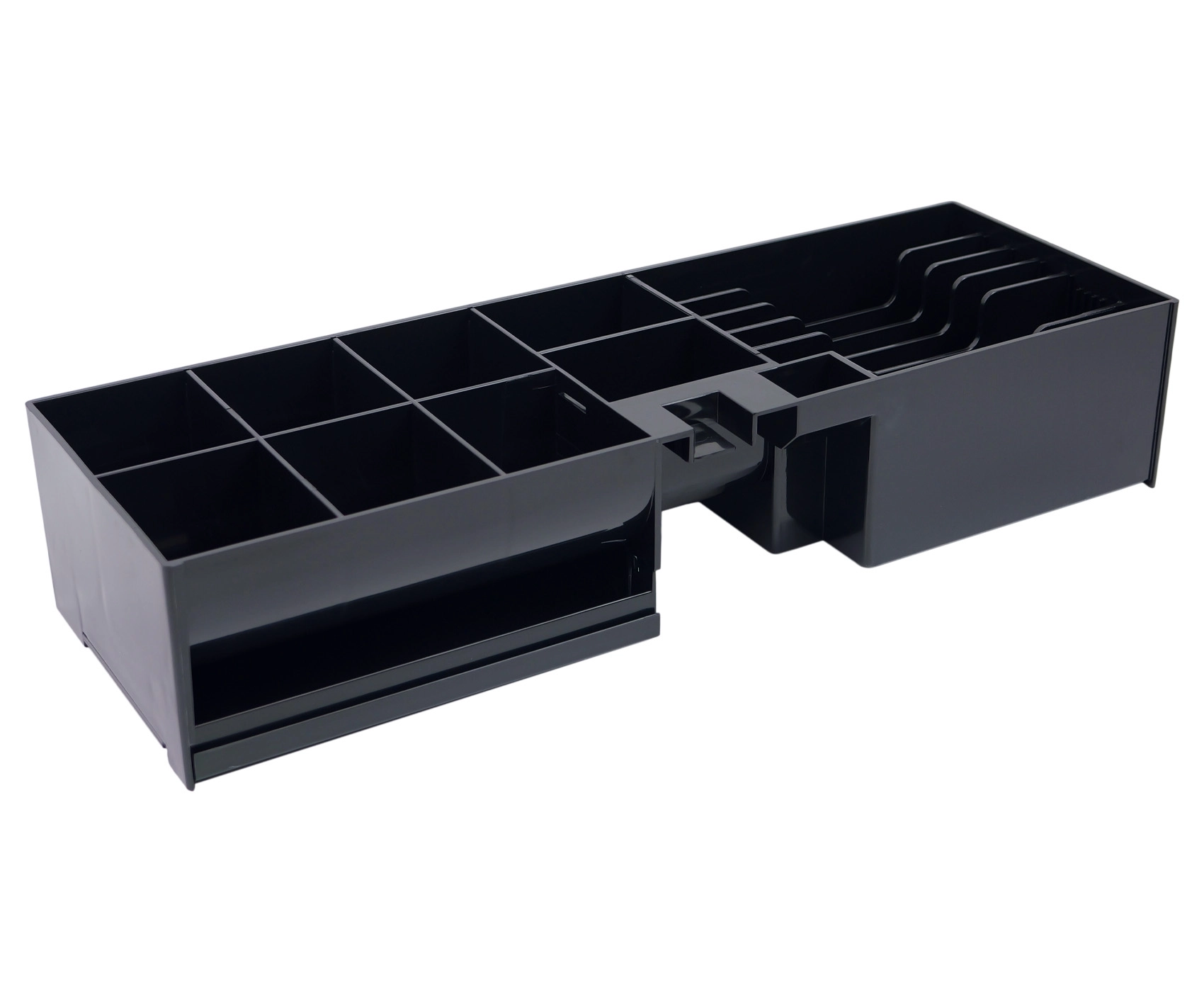 Organizer może być wykorzystany jako akcesorium do szuflad biurkowych lub innych skrytek. Idealnie pasuje do szuflady kasowej HD-KFT46. Bezpieczeństwo gromadzonych wewnątrz środków pieniężnych zwiększa stalowa pokrywa z zamknięciem na klucz.