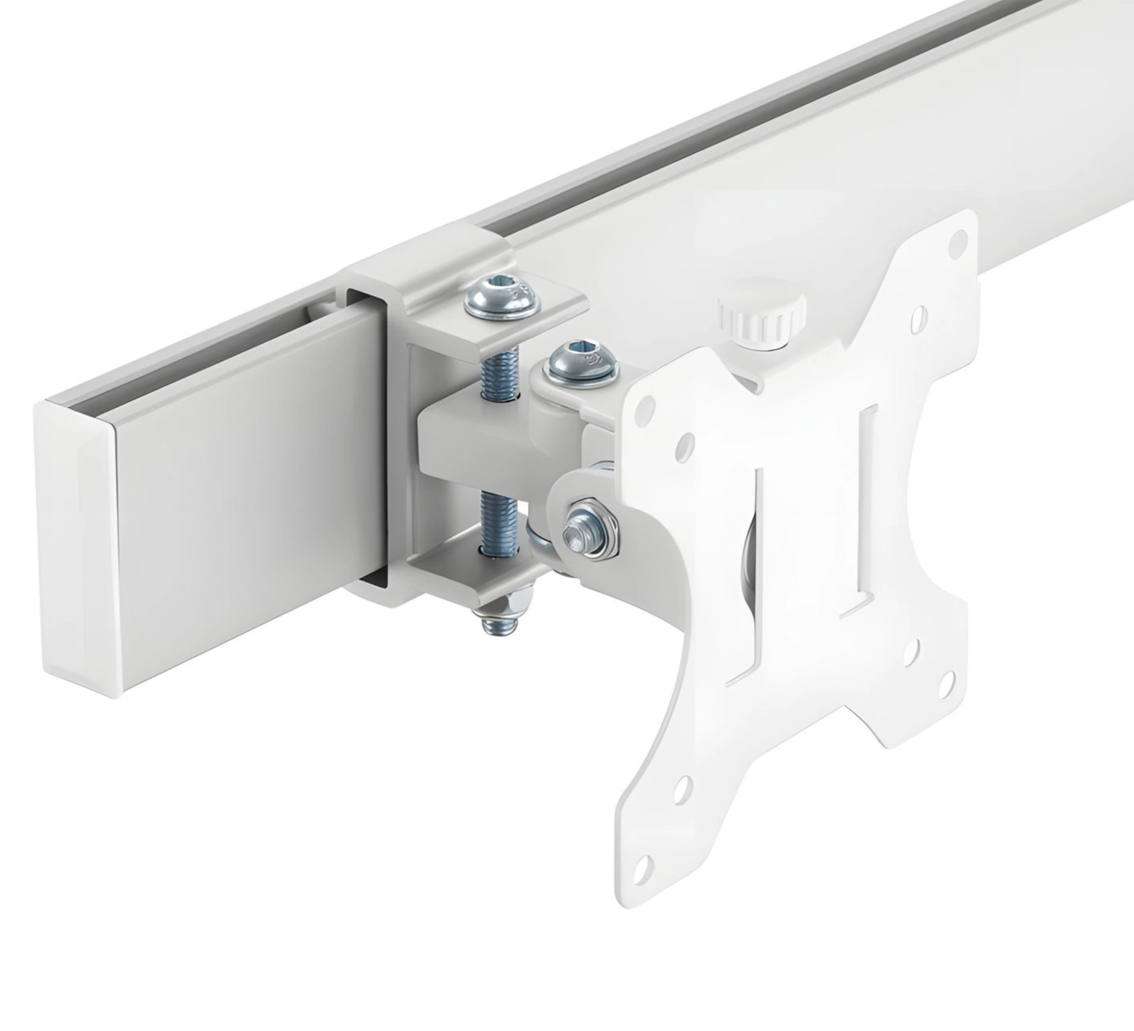 SolidHand-CM04 to wszechstronny uchwyt do monitorów, który łączy nowoczesny design z funkcjonalnością. Lekka aluminiowa konstrukcja zapewnia stylowy wygląd, a swobodnie odchylana konstrukcja umożliwia łatwą regulację monitora do przodu i do tyłu, poprawiając komfort oglądania i redukując odblaski. Indywidualna regulacja wysokości płyty VESA pozwala na precyzyjne wyrównanie monitorów, a wbudowane zarządzanie kablami utrzymuje porządek na biurku. W zestawie znajdują się dwie opcje montażu: zacisk biurkowy i przelotka, co umożliwia łatwą instalację. Obrotowa płytka VESA 360° oraz zakrzywiona szyna pozioma zapewniają optymalną pozycję oglądania, a konstrukcja oszczędzająca miejsce zwiększa przestrzeń roboczą na biurku