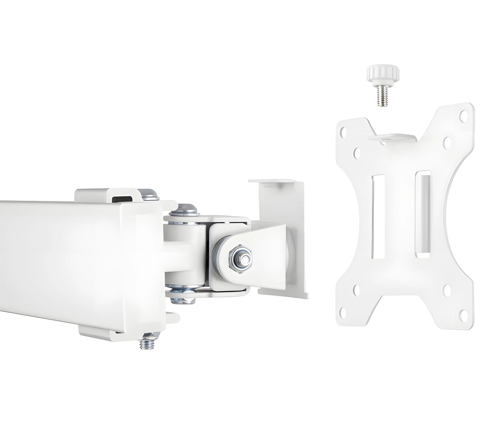 Uchwyt na monitor, śruby oraz podkładki montażowe, instrukcja montażu.